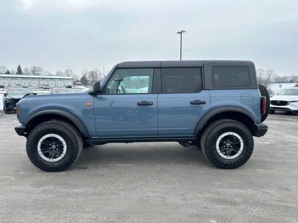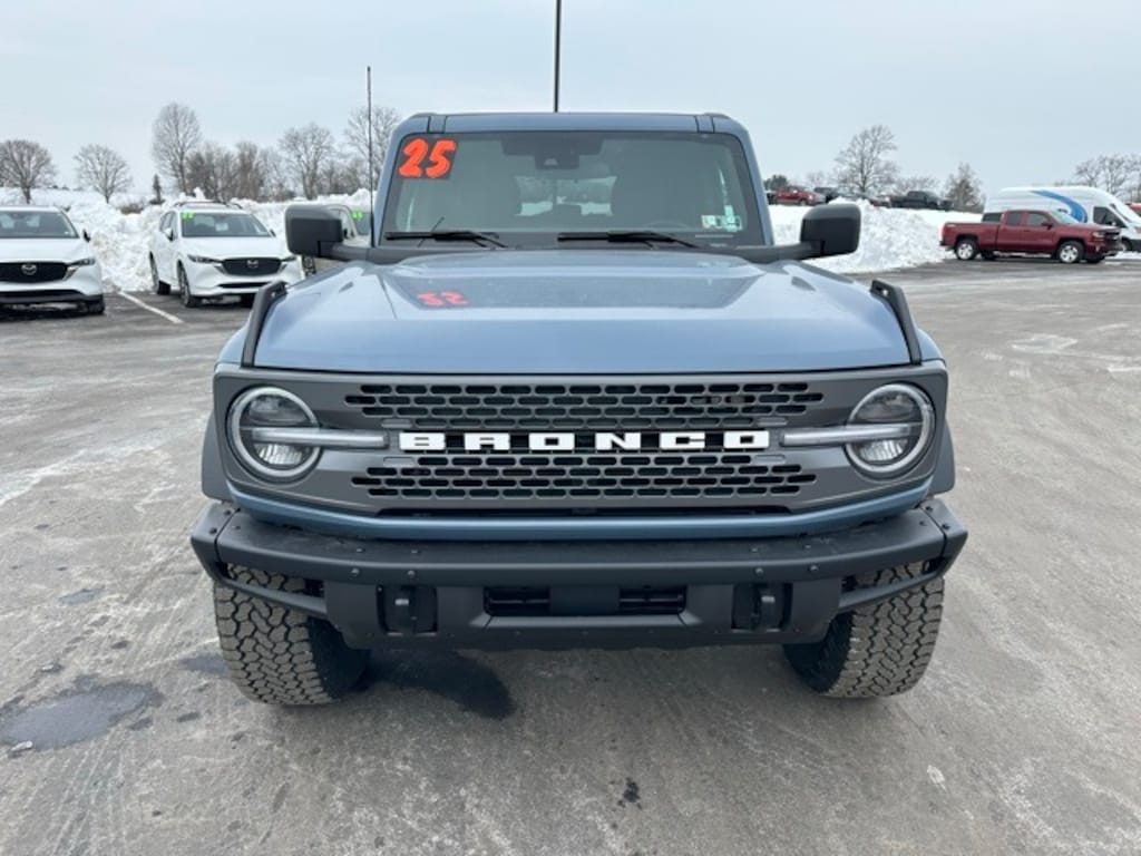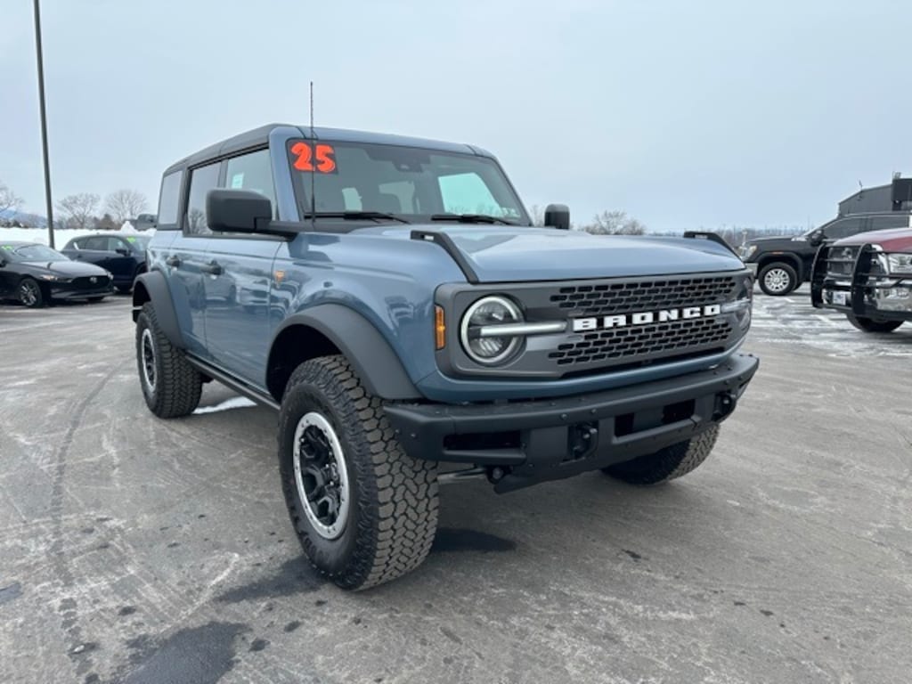 This NEW 2025 Azure Gray Metallic Tri-Coat Ford Bronco Badlands 2.7L EcoBoost V6 10-Speed Automatic 4WD is well equipped and includes these features and benefits: