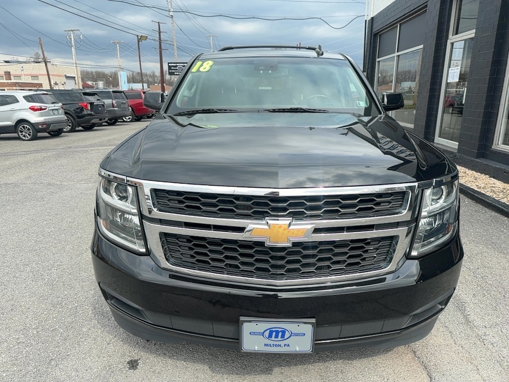 Murray Motors Milton is proud to offer this good-looking 2018 Chevrolet Tahoe a positively wonderful SUV with the following Features: Enhanced Driver Alert Package (Y86) (Forward Collision Alert, IntelliBeam Headlamps, Lane Keep Assist w/Lane Departure Warning, and Low Speed Forward Automatic Braking), Preferred Equipment Group 1LT (1st & 2nd Row Color-Keyed Carpeted Floor Mats, 2nd Row 60/40 Split-Folding Manual Bench, 3rd Row Manual 60/40 Split-Folding Fold Flat Bench, 4-Wheel Antilock Disc Brakes w/Brake Assist, 5 12-Volt Auxiliary Power Outlets, Auto-Dimming Inside Rear-View Mirror, Black Assist Steps, Bose Premium 9-Speaker System, Cargo Net, Color-Keyed Carpeting Floor Covering, Driver Inboard & Front Passenger Airbags, Electronic Cruise Control w/Set & Resume Speed, Extended-Range Remote Keyless Entry, Floor Console, Front Passenger 6-Way Power Seat Adjuster, Leather-Wrapped Steering Wheel, Memory Settings, OnStar Basic Plan For 5 Years, Power Liftgate, Power-Adjustable Accelerator & Brake Pedals, Rear Park Assist w/Audible Warning, Remote Vehicle Start, Roof-Mounted Luggage Rack Side Rails, SiriusXM Satellite Radio, and Universal Home Remote), Premium Smooth Ride Suspension Package, Sun, Entertainment & Destinations Package (Bluetooth® For Phone, HD Radio, Power Sunroof, Radio: Chevrolet MyLink w/Nav/AM/FM Stereo, Rear Seat Blu-Ray/DVD Entertainment System, Single-Slot CD/MP3 Player, and SiriusXM NavTraffic), 18" x 8.5" Aluminum Wheels, 3.08 Rear Axle Ratio, 3rd row seats: split-bench, 4-Wheel Disc Brakes, 9 Speakers, ABS brakes, Adjustable pedals, Air Conditioning, Alloy wheels, AM/FM radio: SiriusXM, Apple CarPlay/Android Auto, Auto High-beam Headlights, Auto-dimming Rear-View mirror, Automatic temperature control, Brake assist, Bumpers: body-color, CD player, Compass, Delay-off headlights, Driver door bin, Driver vanity mirror, Dual front impact airbags, Dual front side impact airbags, Electronic Stability Control, Emergency communication system: OnStar Guidance, Exterior Parking Camera Rear, Front anti-roll bar, Front Bucket Seats, Front Center Armrest, Front dual zone A/C, Front Heated Reclining Bucket Seats, Front reading lights, Front wheel independent suspension, Fully automatic headlights, Garage door transmitter, Heated door mirrors, Heated front seats, Illuminated entry, Leather-Appointed Seat Trim, Low tire pressure warning, Memory seat, Occupant sensing airbag, Outside temperature display, Overhead airbag, Overhead console, Panic alarm, Passenger door bin, Passenger vanity mirror, Pedal memory, Power door mirrors, Power driver seat, Power passenger seat, Power steering, Power windows, Premium audio system: Chevrolet MyLink, Radio: Chevrolet MyLink AM/FM Stereo, Rain sensing wipers, Rear air conditioning, Rear anti-roll bar, Rear reading lights, Rear seat center armrest, Rear window defroster, Rear window wiper, Remote keyless entry, Roof rack: rails only, Security system, Speed control, Speed-sensing steering, Split folding rear seat, Spoiler, Steering wheel mounted audio controls, Tachometer, Telescoping steering wheel, Tilt steering wheel, Traction control, Trip computer, Variably intermittent wipers, and Voltmeter.